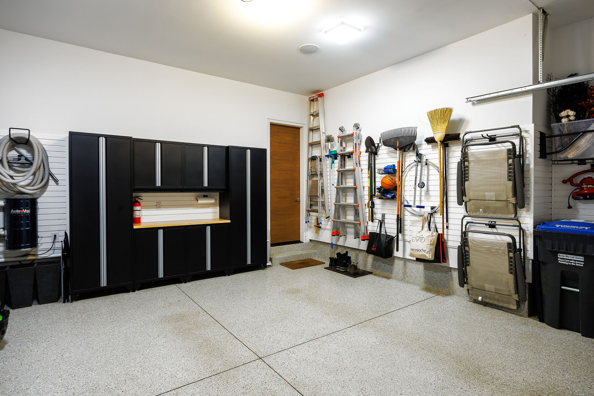 Adjacent to the mudroom is the home’s professionally finished two-car garage — with an additional six parking spaces on the driveway — that includes a protective floor coating, slat wall panels, cabinetry & slat wall accessories, offering a busy family ample storage solutions.